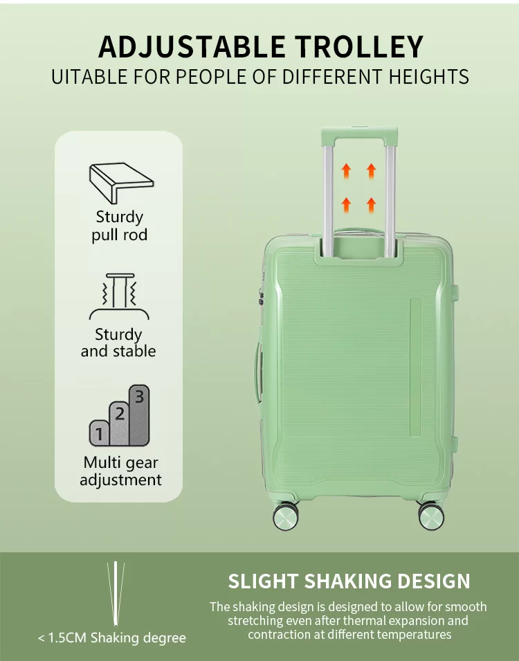 เดินทางอย่างมีสไตล์และมีเอกลักษณ์เฉพาะตัวโดยใช้กระเป๋าเดินทางส่วนตัวของเรา ผลิตจากวัสดุที่ทนทาน ให้การปกป้องทรัพย์สินของคุณได้ยาวนาน ในขณะเดียวกันก็ให้คุณปรับแต่งชื่อ ชื่อย่อ หรือดีไซน์ได้ น้ำหนักเบาและง่ายต่อการถือ มีล้อที่หมุนได้เรียบและที่จับแบบยืดไสลด์เพื่อการเคลื่อนย้ายที่ง่ายดาย ภายในกว้างขวางพร้อมช่องต่างๆ ที่จัดระเบียบช่วยให้เสื้อผ้าและสิ่งของจำเป็นของคุณเรียบร้อยและปลอดภัย เหมาะสำหรับการเดินทางเพื่อธุรกิจ วันหยุด หรือวันหยุดสุดสัปดาห์ กระเป๋าเดินทางใบนี้ผสมผสานการใช้งานจริง ความทนทาน และสไตล์ส่วนตัว ทำให้เป็นตัวเลือกที่เหมาะสำหรับนักเดินทางที่ต้องการกระเป๋าเดินทางที่สะท้อนถึงบุคลิกของตนเอง