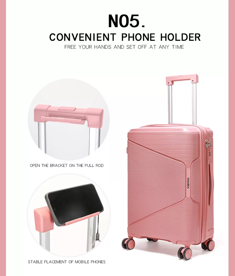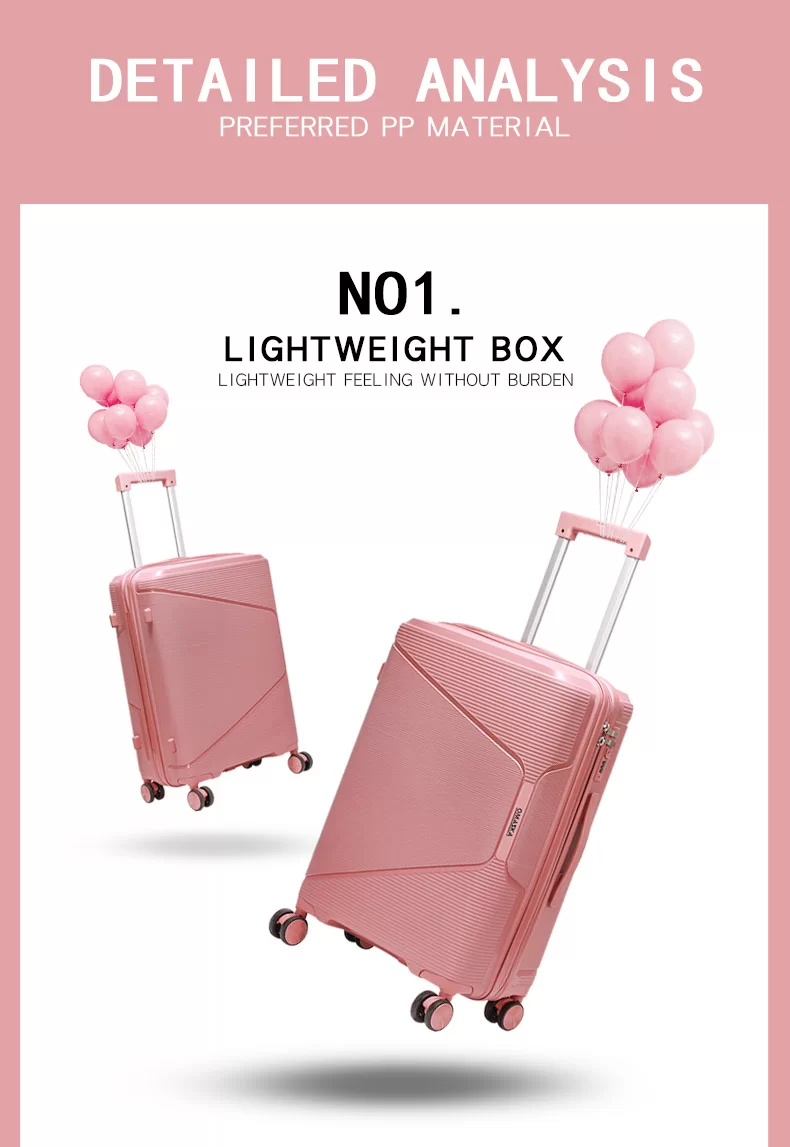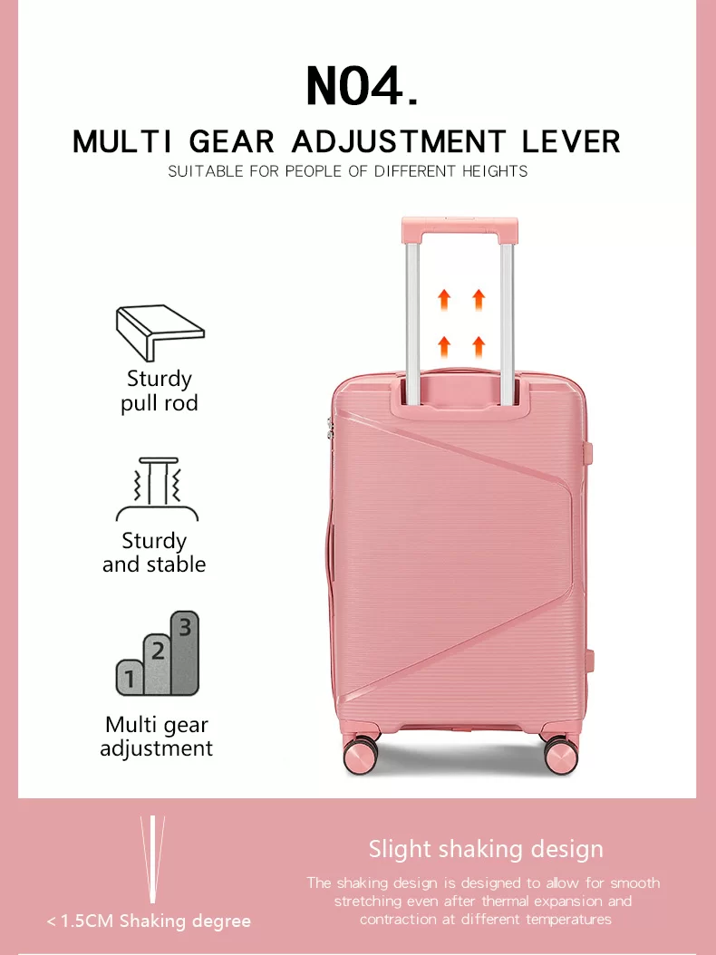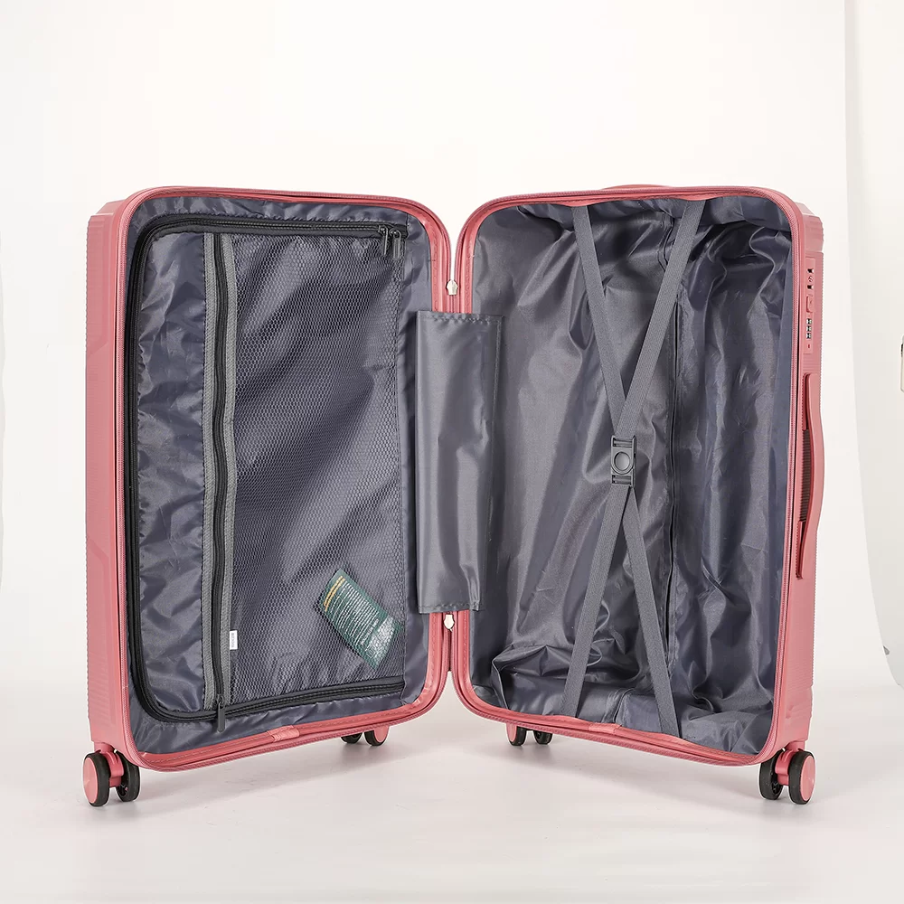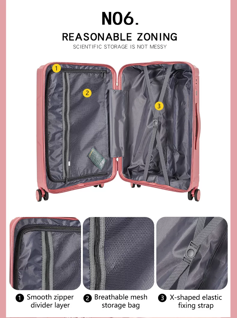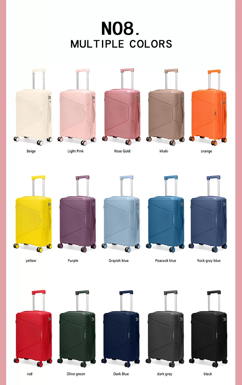 กระเป๋า PP ขึ้นชื่อเรื่องโครงสร้างที่มีน้ำหนักเบาแต่มีความยืดหยุ่นสูง โพลีโพรพีลีนทนทานต่อการแตกร้าวและสามารถดูดซับแรงกระแทกได้อย่างมีประสิทธิภาพ ทำให้เหมาะสำหรับนักเดินทางที่ต้องยกสัมภาระอย่างหยาบๆ หรือบรรทุกของหนักบ่อยครั้ง ความยืดหยุ่นช่วยให้ตัวกระเป๋าโค้งงอได้เล็กน้อยภายใต้แรงกดดันโดยไม่แตกหัก คุณจึงมั่นใจได้ว่าทรัพย์สินของคุณจะได้รับการปกป้อง นอกจากนี้ กระเป๋าเดินทาง PP มักจะเป็นมิตรกับงบประมาณมากกว่าและซ่อมแซมง่ายกว่า ทำให้เป็นทางเลือกที่เป็นประโยชน์สำหรับนักเดินทางในชีวิตประจำวัน