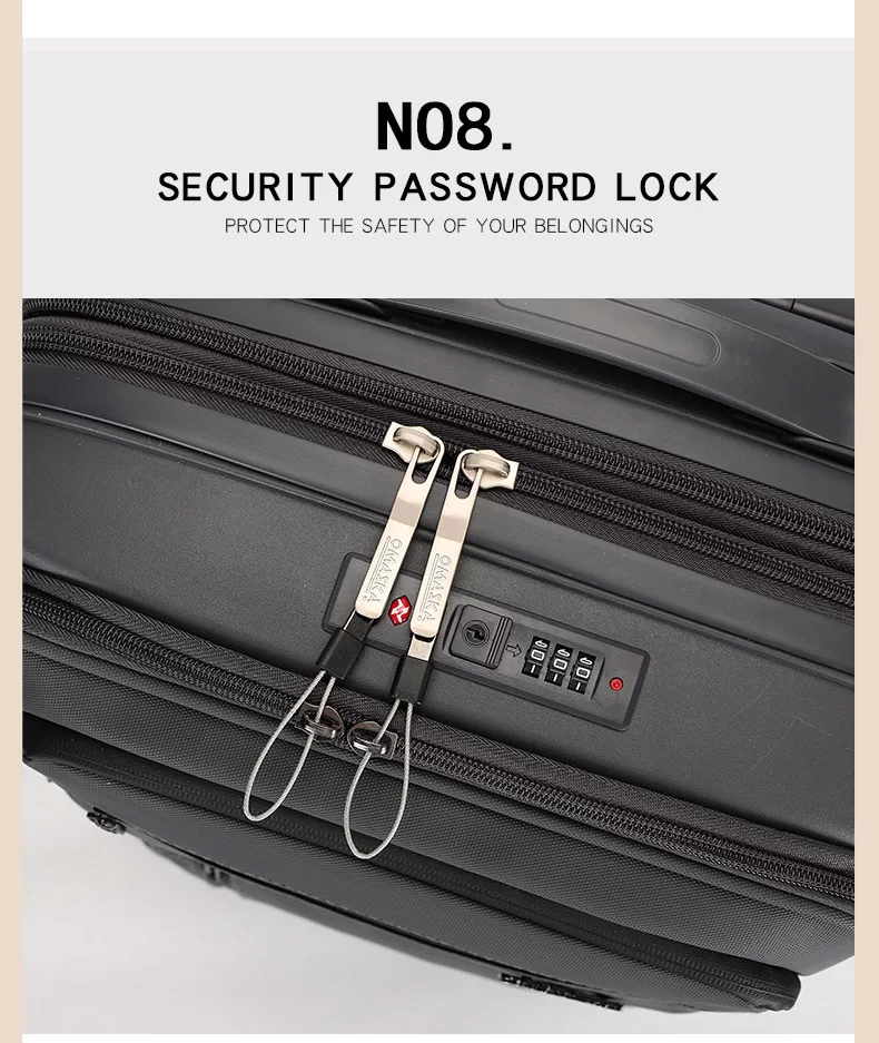 รักษาสิ่งของของคุณให้ปลอดภัยจากฝน น้ำหก และความชื้นด้วยกระเป๋าเดินทางกันน้ำของเรา ผลิตจากวัสดุกันน้ำคุณภาพสูง ช่วยให้สิ่งของของคุณแห้งเสมอในทุกสภาวะ น้ำหนักเบาแต่แข็งแรง มีล้อที่หมุนได้นุ่มนวลและด้ามจับแบบยืดไสลด์ที่สะดวกสบายเพื่อการเคลื่อนย้ายที่ง่ายดาย ภายในกว้างขวางประกอบด้วยช่องต่างๆ ที่เป็นระเบียบเพื่อการบรรจุเสื้อผ้า อุปกรณ์อิเล็กทรอนิกส์ และสิ่งจำเป็นต่างๆ ได้อย่างมีประสิทธิภาพ เหมาะสำหรับการเดินทางเพื่อธุรกิจ วันหยุดพักผ่อน หรือการเดินทางผจญภัย กระเป๋าเดินทางกันน้ำผสมผสานการป้องกัน การใช้งานจริง และสไตล์ เดินทางอย่างมั่นใจโดยรู้ว่าสัมภาระของคุณปลอดภัยและแห้ง ขณะเพลิดเพลินกับการออกแบบที่ทันสมัยและเพรียวบางที่เติมเต็มทุกการเดินทาง